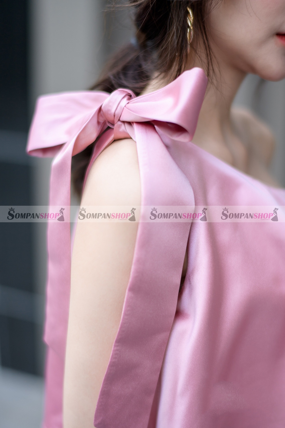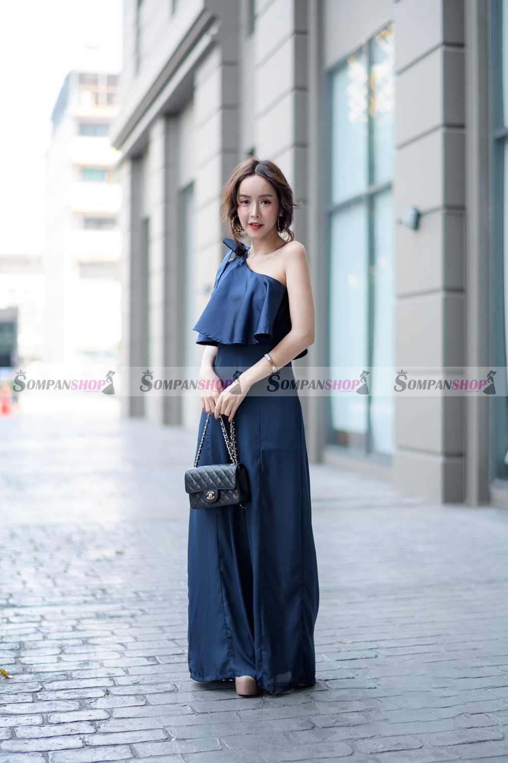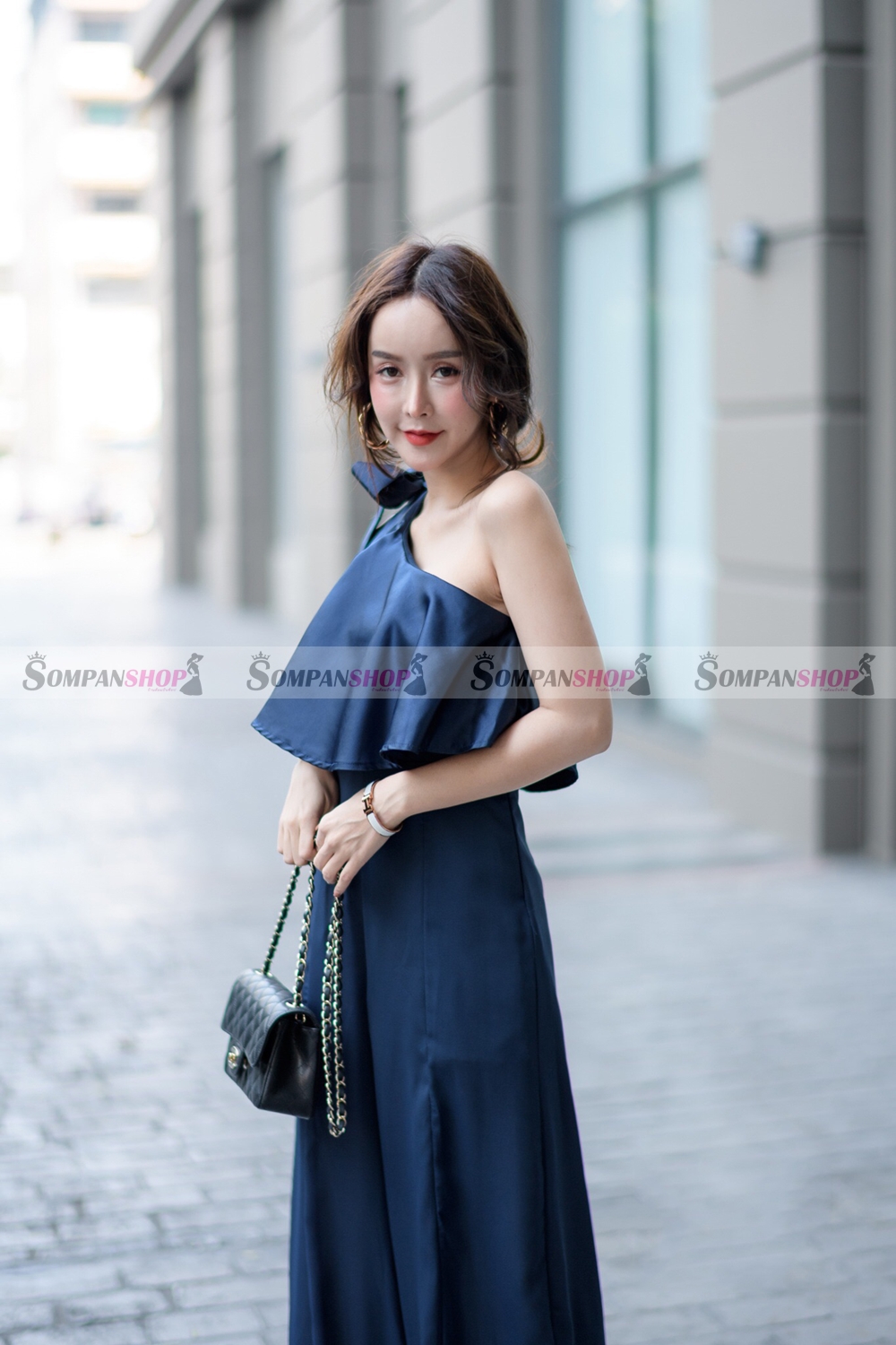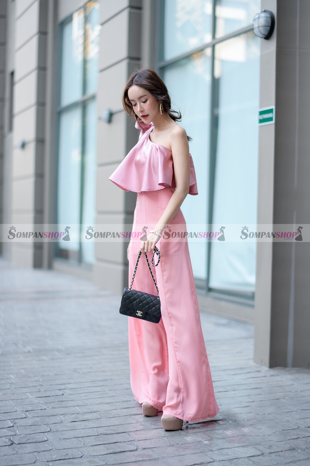 ชุดเดรสกางเกงขายาว ไหล่เฉียงแต่งระบาย ประดับโบว์ที่หัวไหล่ กางเกงขายาวทรงบาน ขากว้างสุดเก๋ ผ้าซาตินมันเงา เนื้อผ้าหนามีน้ำหนัก ดูสวยหรู สามารถใส่ได้โอกาส ทั้งใส่เป็นชุดไปงานแต่งงาน ชุดออกงาน หรือจะใส่เป็นชุดใส่ในวันหยุดสบาย จะลุคสวยเก๋ ดูดีสุดๆไปเลย
